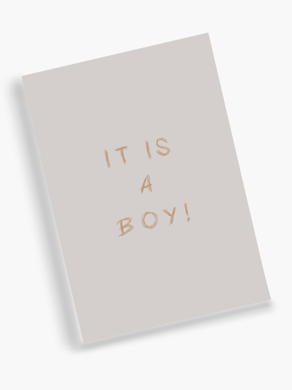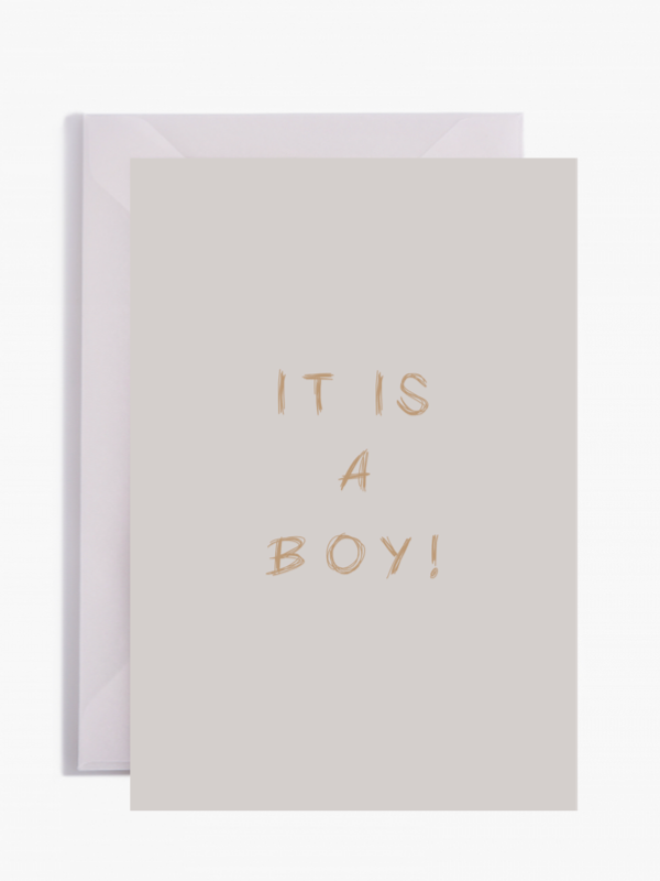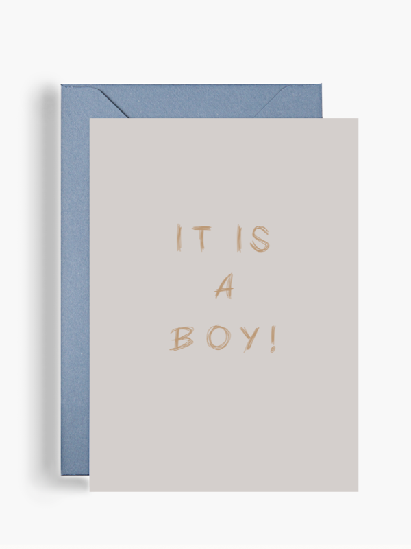 Вітальну листівку “It is a boy” можна придбати як без конверту, так і упаковану у сірий, синій конверти або конверт iз кальки.