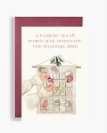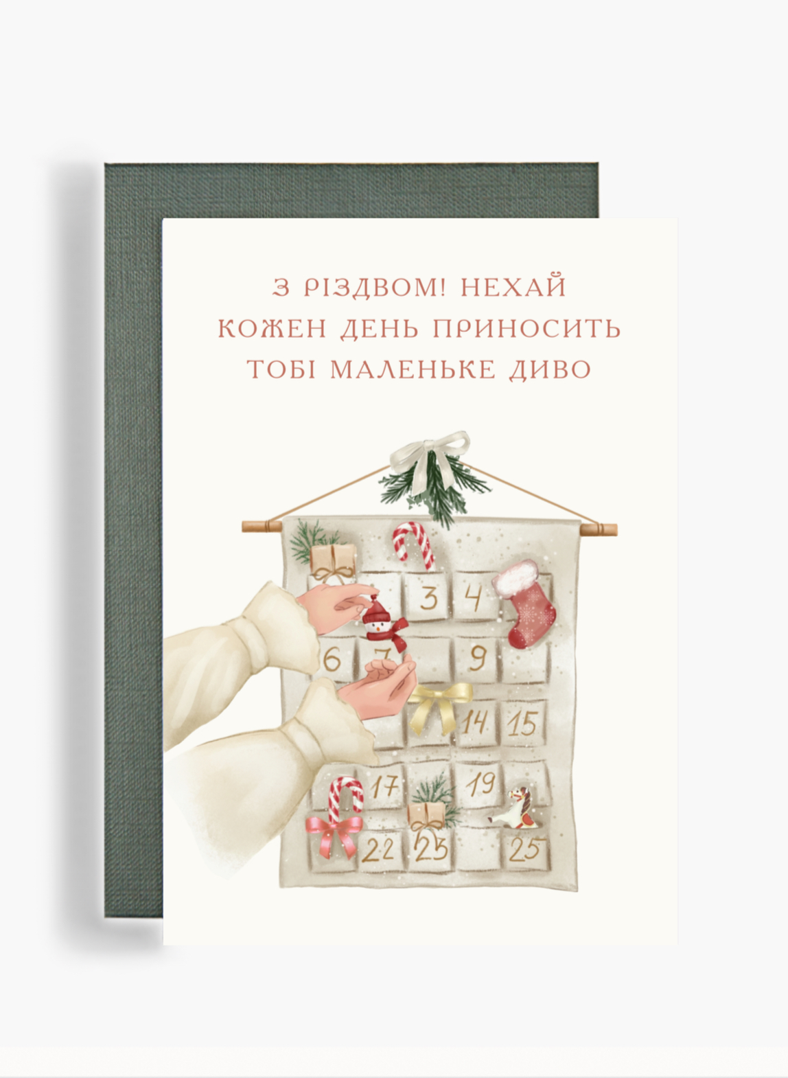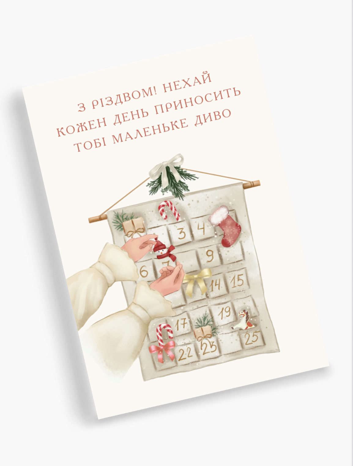 Мені завжди здавалося, що очікування свята — це найприємніша частина Різдва. Пам’ятаю, як мама дарувала мені адвент-календар, і я з нетерпінням відкривала кожне віконце, уявляючи, яке маленьке диво чекає на мене всередині. Ця листівка, на мою думку, може стати саме таким спогадом — щоденним нагадуванням про те, що справжнє диво в нашому житті є любов.