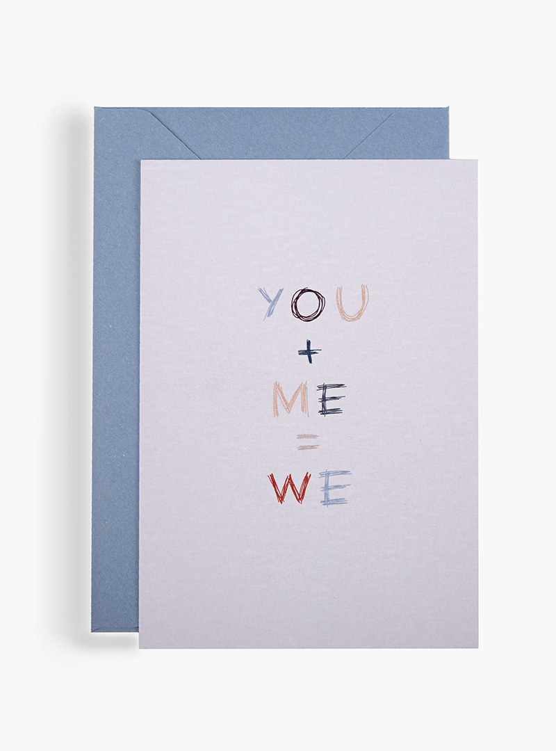 Листівка “You + Me” може бути запакована в синiй або сiрий конверти.
