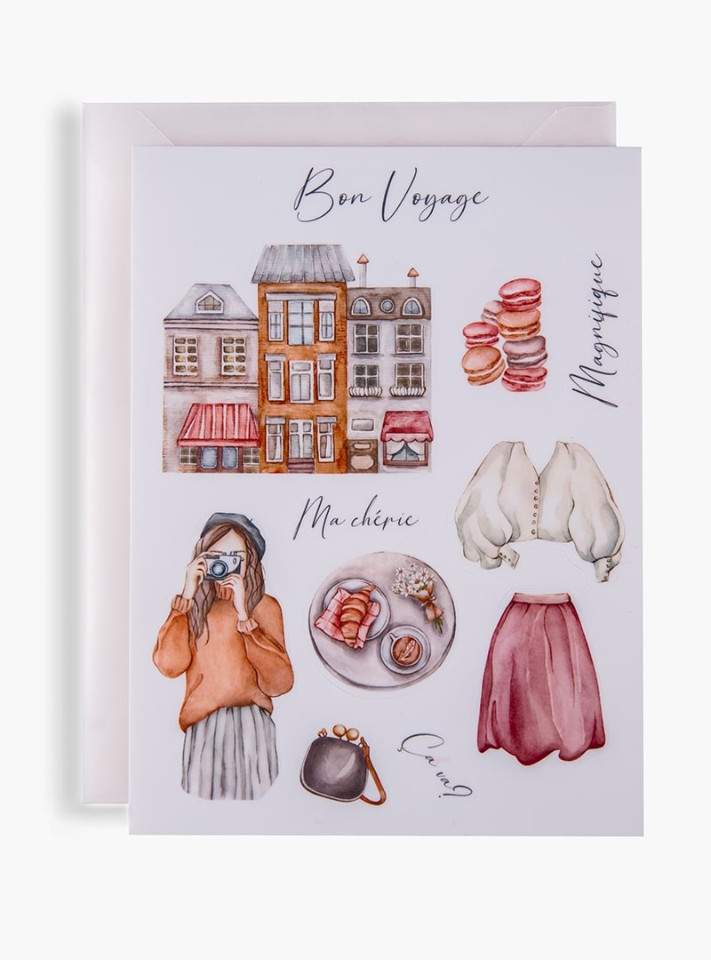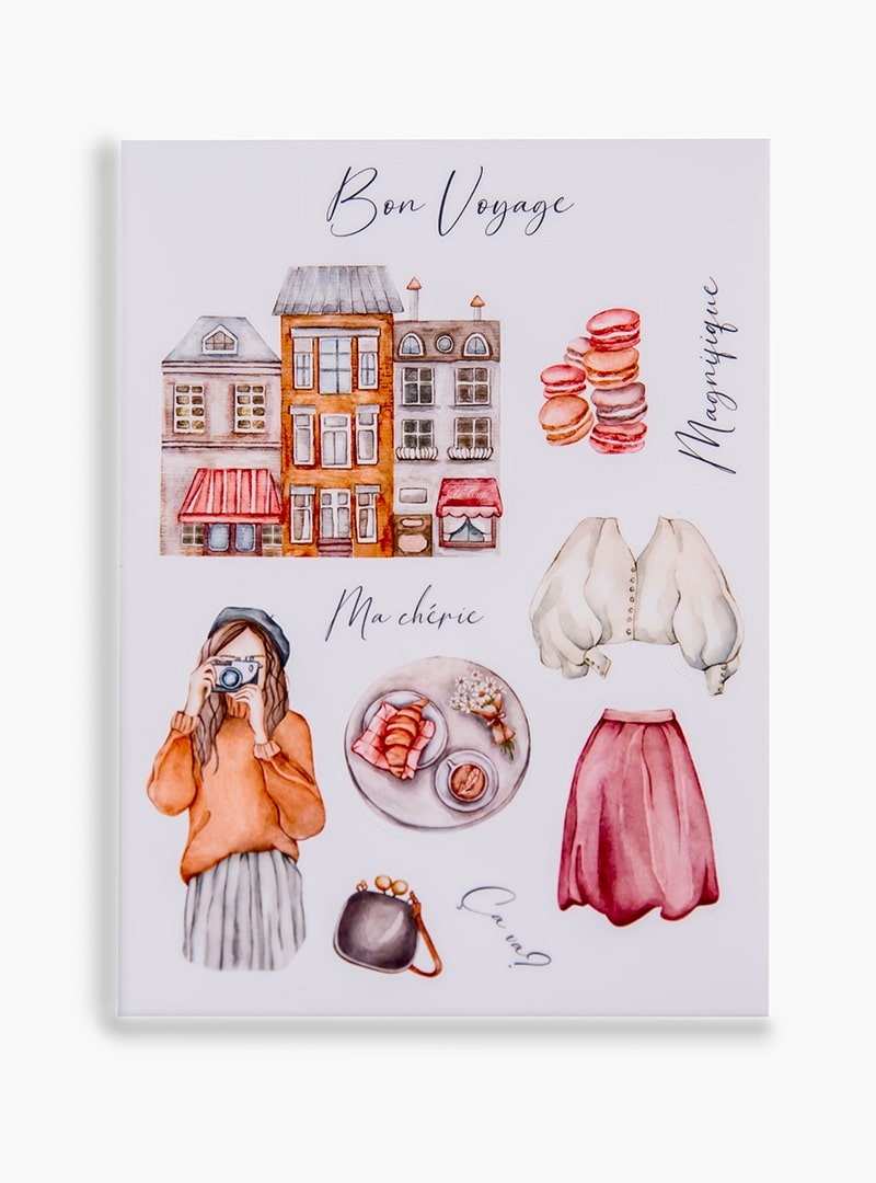 Стікери Bon Voyage нагадають вам про ваші подорожі і прикрасять яскравими фарбами ваші блокноти та телефони. Що вибрати: старовинні будиночки чи дівчину-фотографа, вирішувати лише вам!